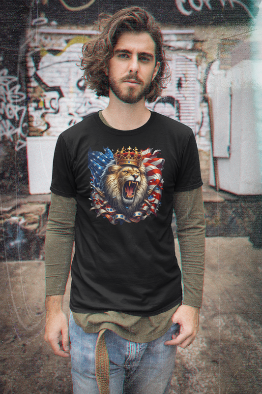 "King Lion Roaring America" Unisex Full Color Graphic Tee | by AmericaShirt™