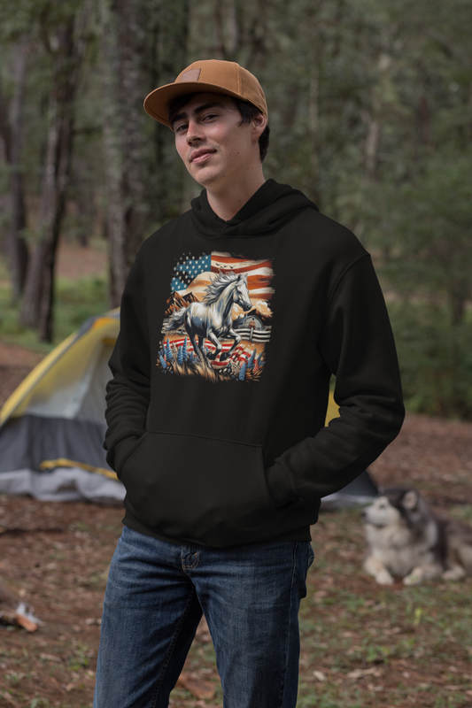 "American Farmland Stallion" Unisex Full Color Graphic Hoodie | by AmericaShirt™