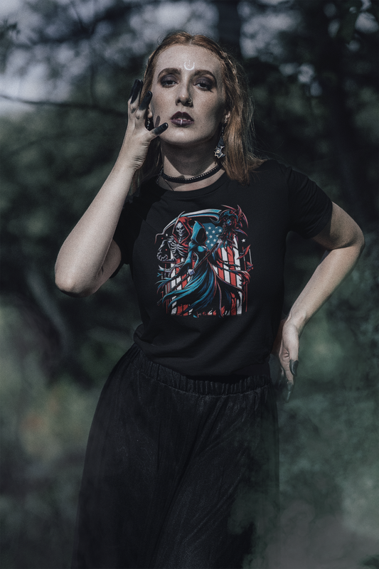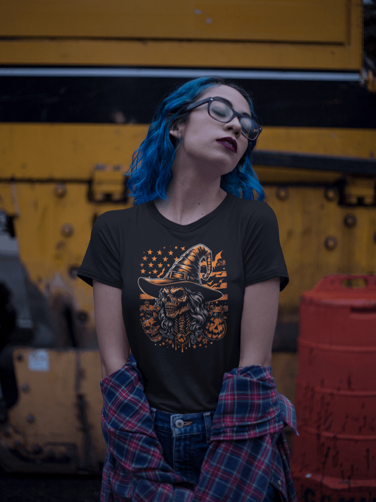 "American Skeletal Witch" Unisex Full Color Graphic Tee | by AmericaShirt™