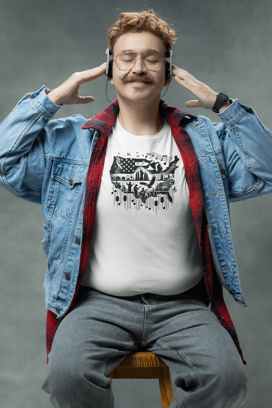"American Music Notes" Unisex Black & White Graphic Tee | by AmericaShirt™
