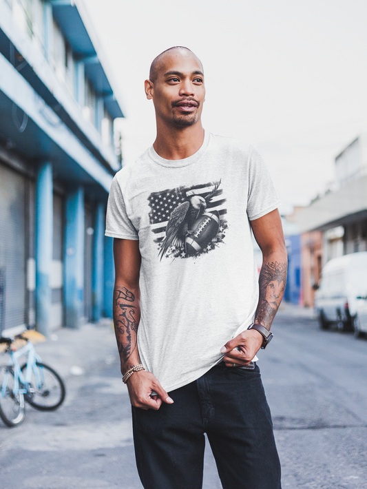 "Freedom And Football" Unisex Black & White Graphic Tee | by AmericaShirt™